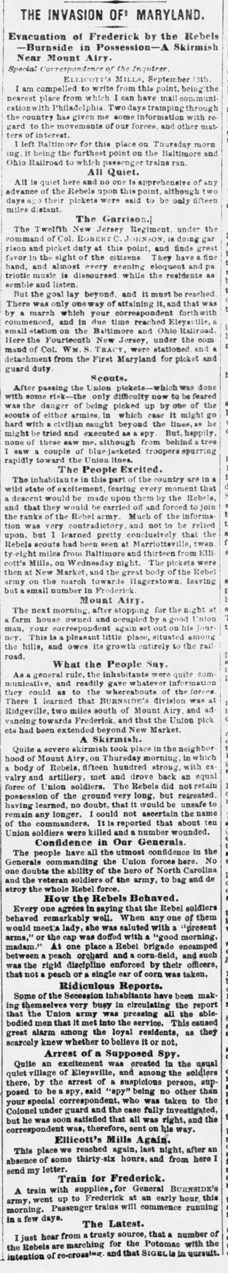 Special Correspondence of the Inquirer. FREDERICK, MD., Sept. 17, 1862.